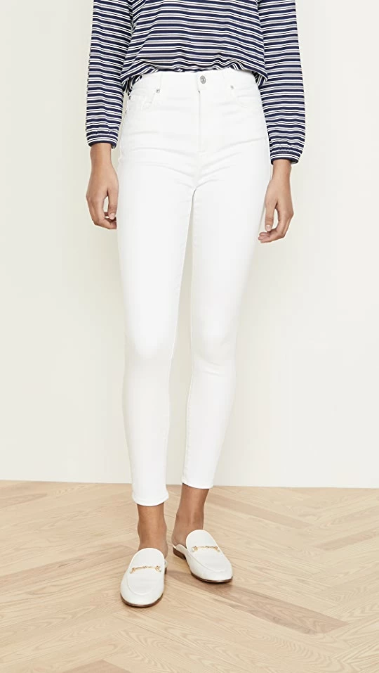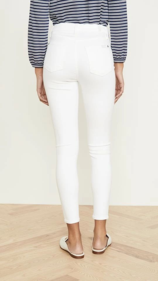 Lighten up your denim looks with these white skinny jeans from 7 For All Mankind. With a high-waisted, ankle-length cut, theyβre a formfitting pair that fit right in with your off-duty outfits.
