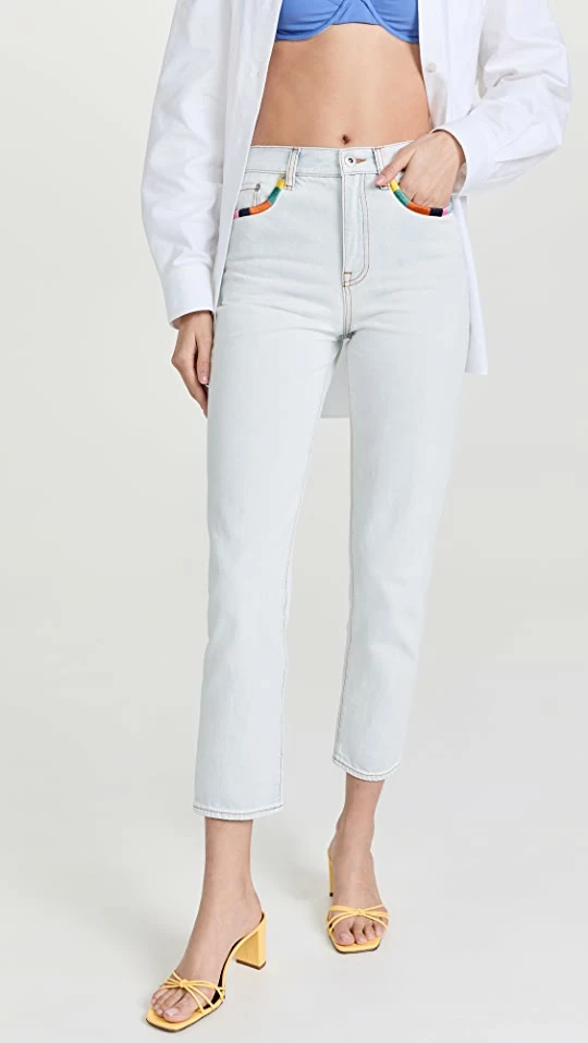 Colorful embroidered trim brings an unexpected touch of charm to these super-faded straight leg jeans from Something Navy.