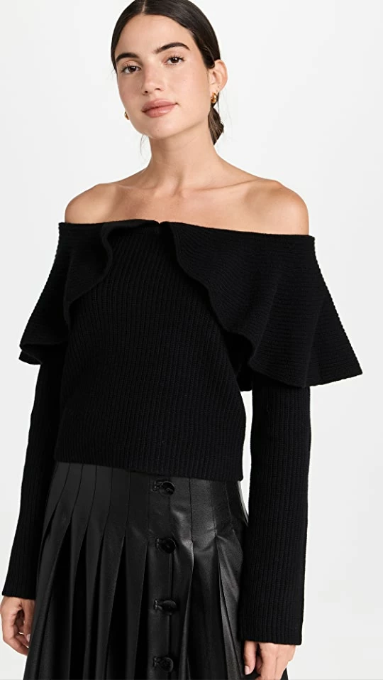 - Off-shoulder neckline with oversized flounce collar