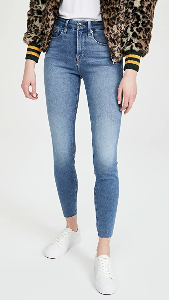 A subtly distressed and faded version of the label’s signature Good Legs jeans. These Good American jeans have a formfitting silhouette that boasts the superior retention and recovery that you really want in a pair of skinny jeans.