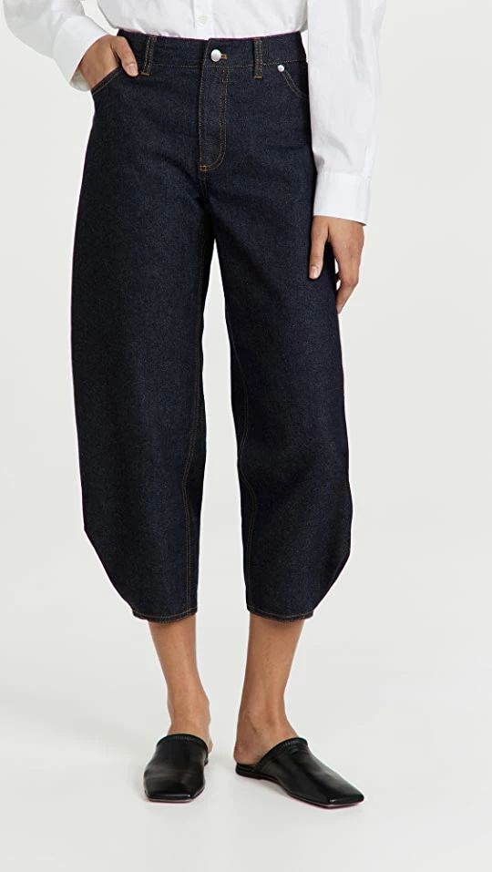 The label’s newest variation on an iconic sculpted pant. These Tibi jeans are crafted from a 3×1 Japanese left hand twill denim and feature a low-rise waist and elegant curves at the calf for an unmistakably modern look.