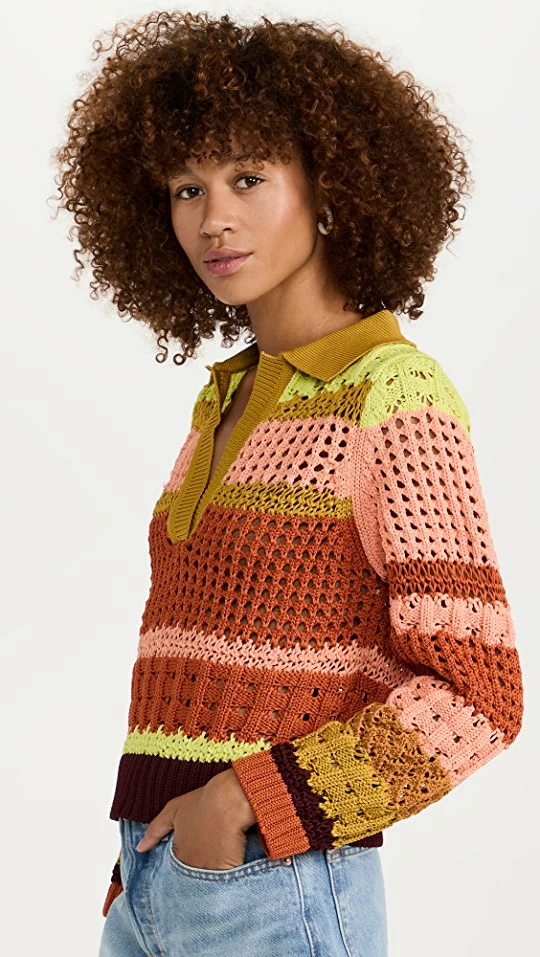 - Striped design and tibbed trim