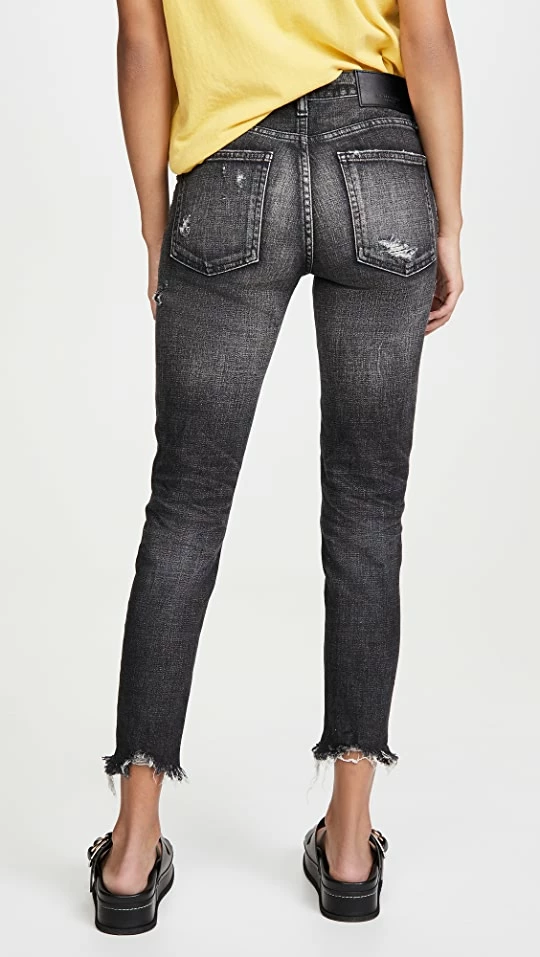 - Shredded holes and allover distressing