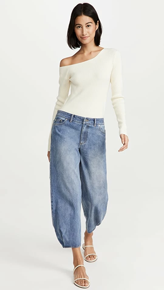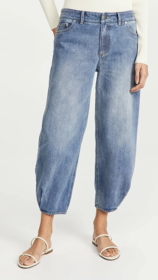 The label’s newest variation on an iconic sculpted pant. These Tibi jeans are crafted from a 3×1 Japanese left hand twill denim and feature a low-rise waist and elegant curves at the calf for an unmistakably modern look.