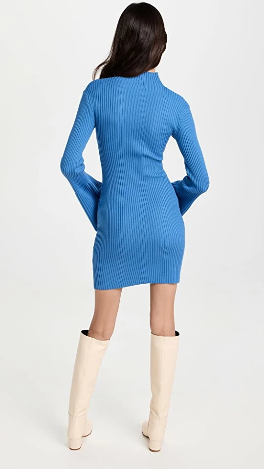 - Mock neck and long sleeves with bell cuffs