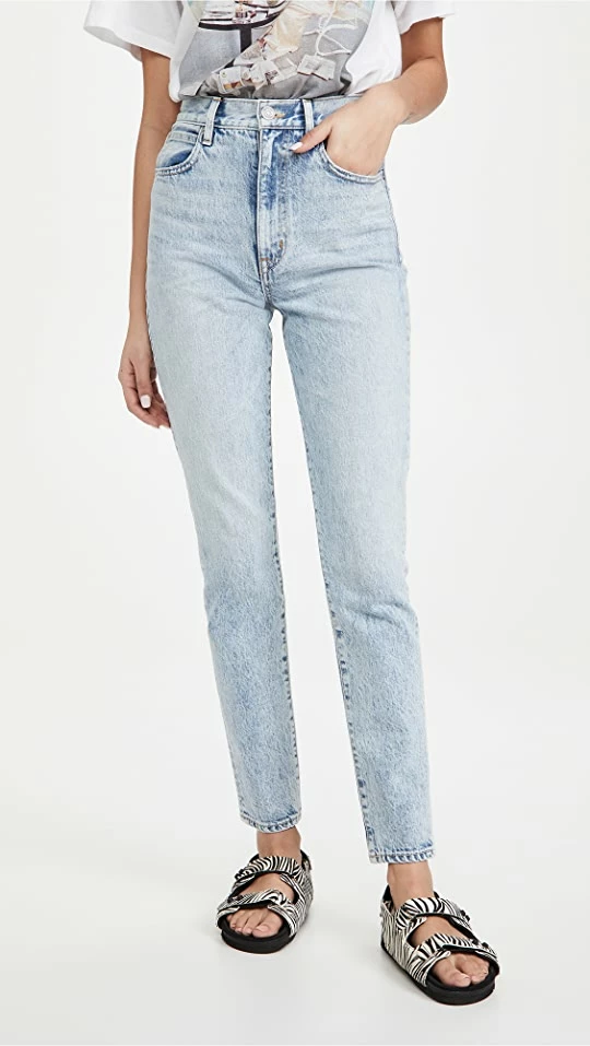 SLVRLAKE delivers jeans with a lean silhouette and fresh acid wash. Pair them with slide sandals and a boxy graphic tee to complete a Friday night out look.
